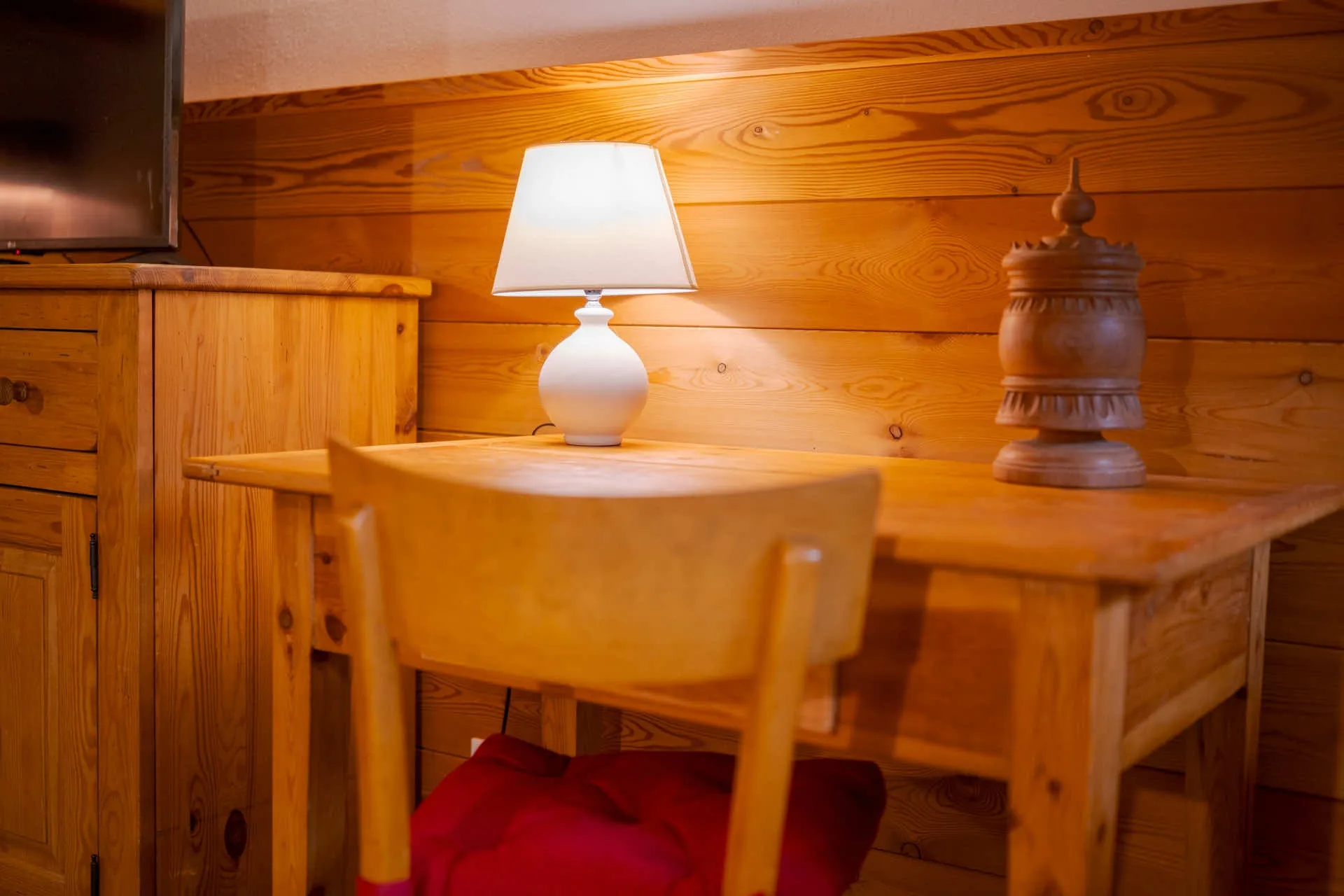 L'appartamento offre una zona giorno con angolo cottura completamente attrezzato (frigo, due piastre elettriche, forno a microonde e lavastoviglie), TV LCD 32" e un comodo divano letto con due letti singoli. La camera da letto è arredata con un letto matrimoniale da 160 cm, una cassettiera e un armadio a muro. Il bagno dispone di una doccia. Completano l'abitazione un balconcino con vista dominante sulla vallata e il giardino.